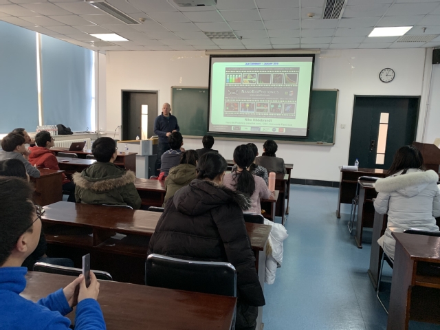 为提升学科国际合作水平,拓展研究生国际视野,1月16日,著名纳米生物光子学专家、法国巴黎第十一大学Niko Hildebrandt教授应邀来到beat365中国唯一官网,为学院师生做了一场以“When Time Meets Colors: Novel Concepts for Multiplexed Biosensing Using Time-Resolved FRET”为主题的学术报告。学院教师代表及全体研究生参加报告会,学院副院长孙春燕教授主持报告会。