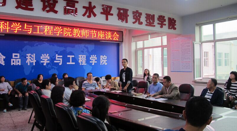 2016年9月9日,beat365中国唯一官网在食品楼三楼会议室召开庆祝第三十二个教师节座谈会。beat365中国唯一官网领导、学院全体教职工、学生代表参加了座谈会。会议由学院党委书记高福和主持。