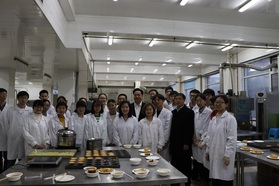 首先,校长来到食品实验楼,听取了庞勇老师的2015级食品科学与工程专业《食品工艺实验课》,并与师生亲切交流。校长品尝了同学们制作的蛋糕、薯条、番茄酱,教导同学们不但要从传统的工艺和配方上掌握食品的制作要领,更要在理论上学懂,学通,既要知其然,更要知其所以然。只有强大的理论支撑,才能更好推动工艺的改进,配方的创新。校长广博的知识令学生佩服,语重心长的教导让学生备受感动,同学们非常激动,纷纷表示:在大学期间能够当面聆听到校长教诲并和校长进行交流,万分荣幸,收获颇多,终身难忘。最后在同学们的热烈邀请下,李元元校长高兴地与同学们合影留念。