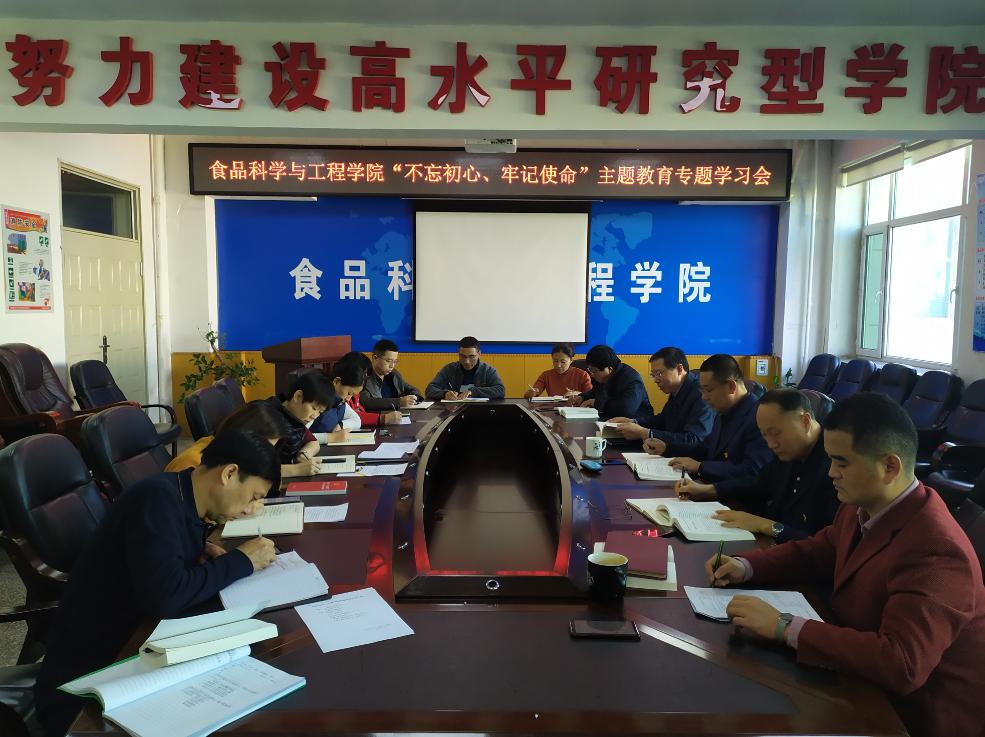 2019年11月5日下午,beat365中国唯一官网在食品楼三楼会议室召开了“不忘初心、牢记使命”主题教育专题学习会,学院党委委员、纪委委员、各党支部书记参加了会议。会议由学院党委书记高福和同志主持。