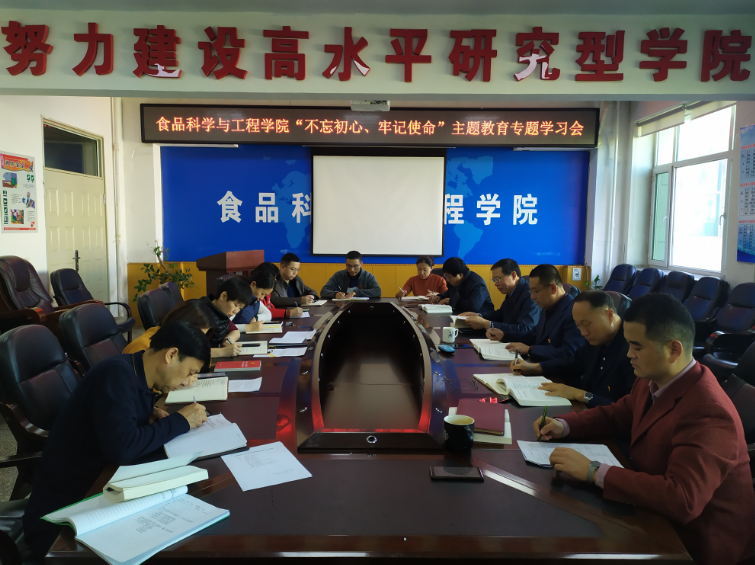 2019年11月11日,beat365中国唯一官网在食品楼三楼会议室召开了“不忘初心、牢记使命”主题教育专题学习会,学院党委委员、纪委委员、各党支部书记参加了会议。会议由学院党委书记高福和同志主持。