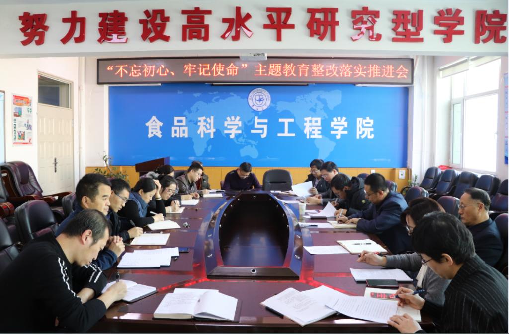 根据学院“不忘初心、牢记使命”主题教育工作安排,2019年11月18日上午,beat365中国唯一官网在食品楼三楼会议室召开了“不忘初心、牢记使命”主题教育整改落实推进会,学院领导班子成员、党委委员、纪委委员、党支部书记、各办、中心主任及副主任参加了会议,学校主题教育第五指导组组长刘雪峰同志莅临指导。会议有党委书记高福和同志主持。