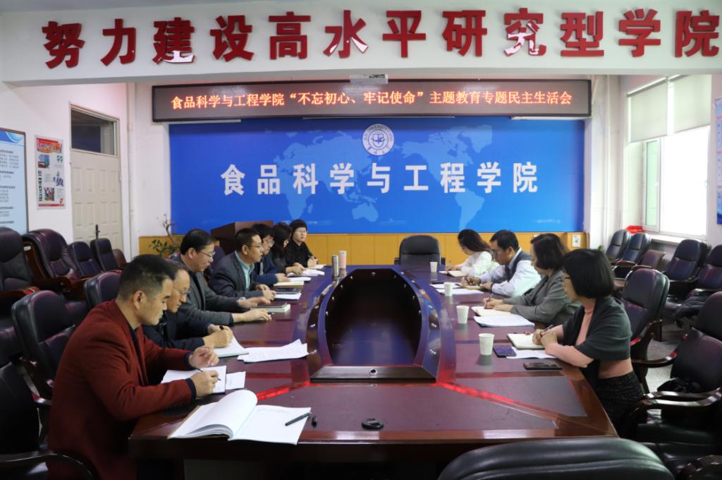 按照学校《关于组织召开“不忘初心、牢记使命”专题民主生活会的通知》要求,2019年12月9日下午,食品科学与工程在食品楼三楼会议室召开“不忘初心、牢记使命”专题民主生活会。学校党委常务副书记蔡莉,学校“不忘初心、牢记使命”主题教育第五指导组组长刘雪峰、副组长陈建华、组员姜姗姗老师出席本次民主生活会并进行指导。学院全体处级党员领导干部参加了会议,非党员处级领导干部列席会议。会议由党委书记高福和同志主持。