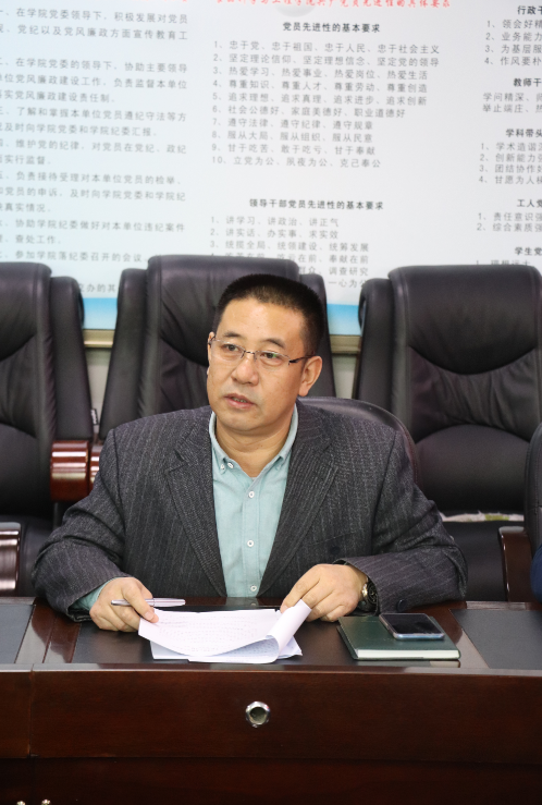 会上,党委书记高福和同志首先代表学院领导班子做了对照检查发言。高书记对学院2018年度民主生活会整改落实情况进行了简要工作报告,围绕“不忘初心、牢记使命”主题教育专题民主生活会主题,结合学院2019年工作实际,着重从检视问题、存在问题的原因剖析及努力方向和改进措施等3个部分进行了汇报。随后,学院党员处级领导干部依次作个人对照检查发言。大家针对检视问题,从政治、思想、作风、能力和廉政等5个方面进行了深入原因剖析,提出了整改落实的具体举措。会上,大家本着对学院发展建设和同志负责的态度,坦诚开展了严肃认真的批评和自我批评。列席会议的非党员处级领导干部也发表了参与主题教育的体会认识,对学院建设提出了很好的意见建议。