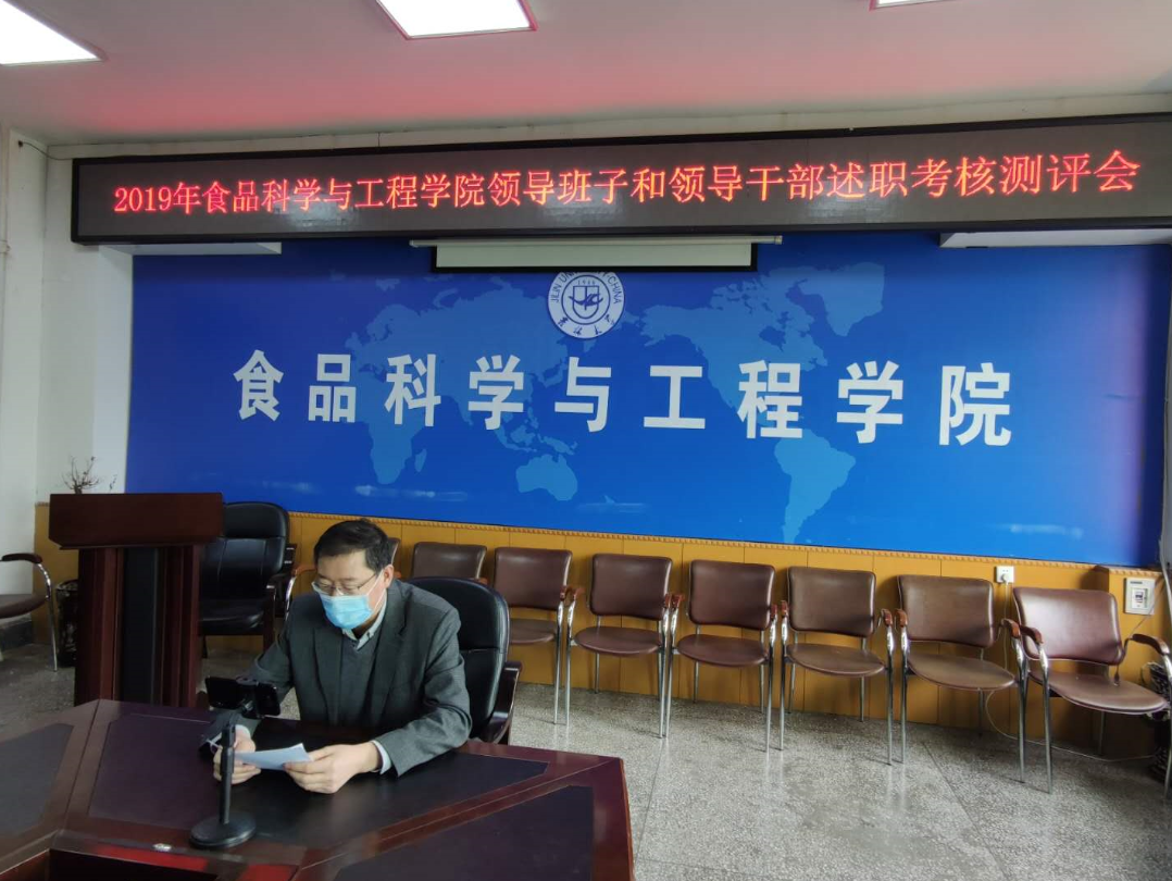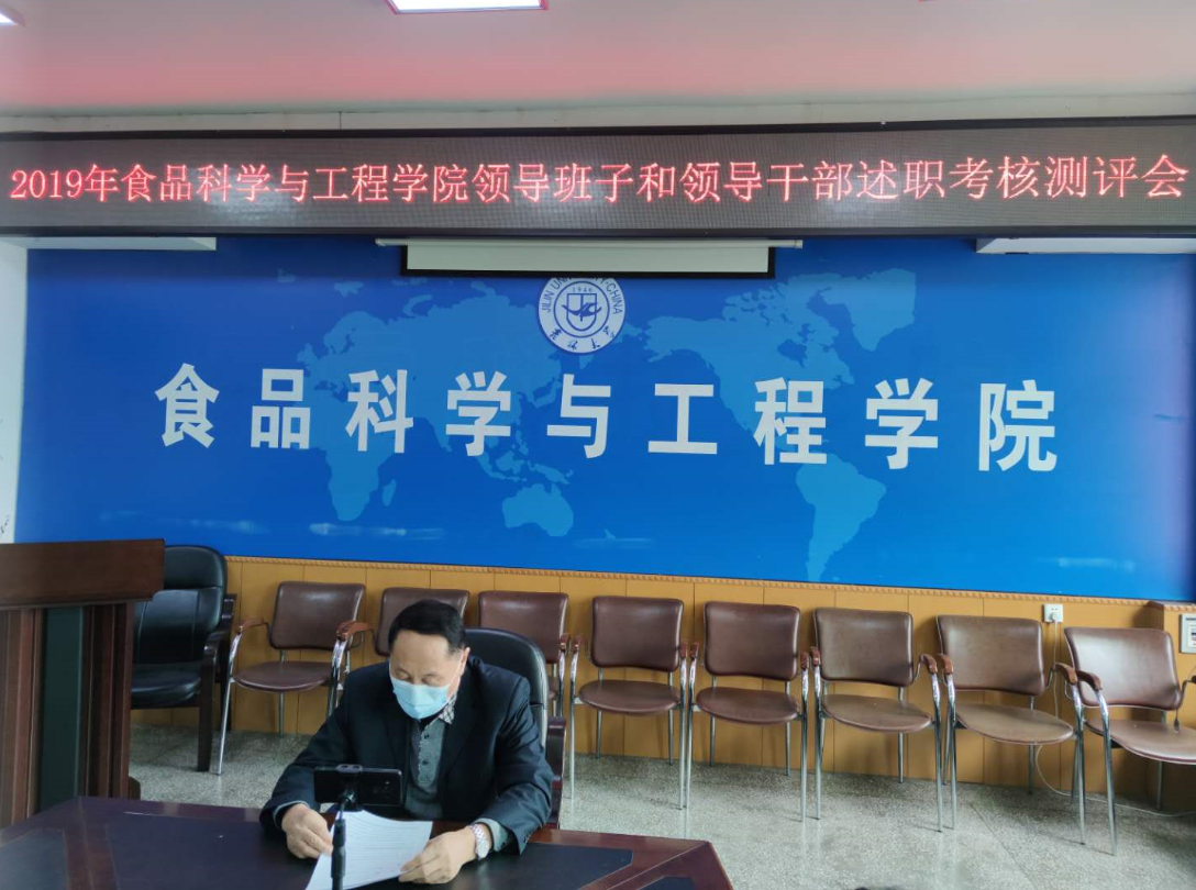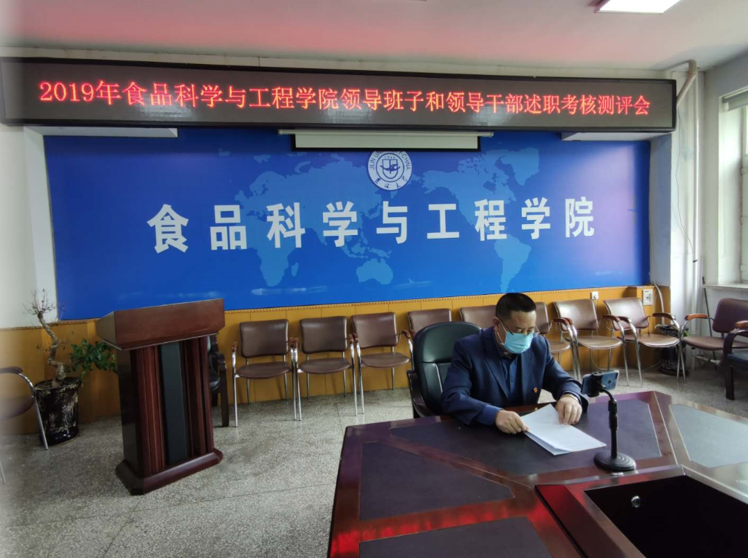 在疫情防控特殊时期,根据学校关于开展处级领导班子和领导干部2019年度考核的工作安排,2020423日下午,beat365中国唯一官网在食品楼三楼会议室召开了学院全体教职工及学生代表视频会议,进行学院领导班子和领导干部述职测评。学院领导班子成员、全体教职工及学生代表共70人参加了视频会议,会议由学院党委书记高福和同志主持。