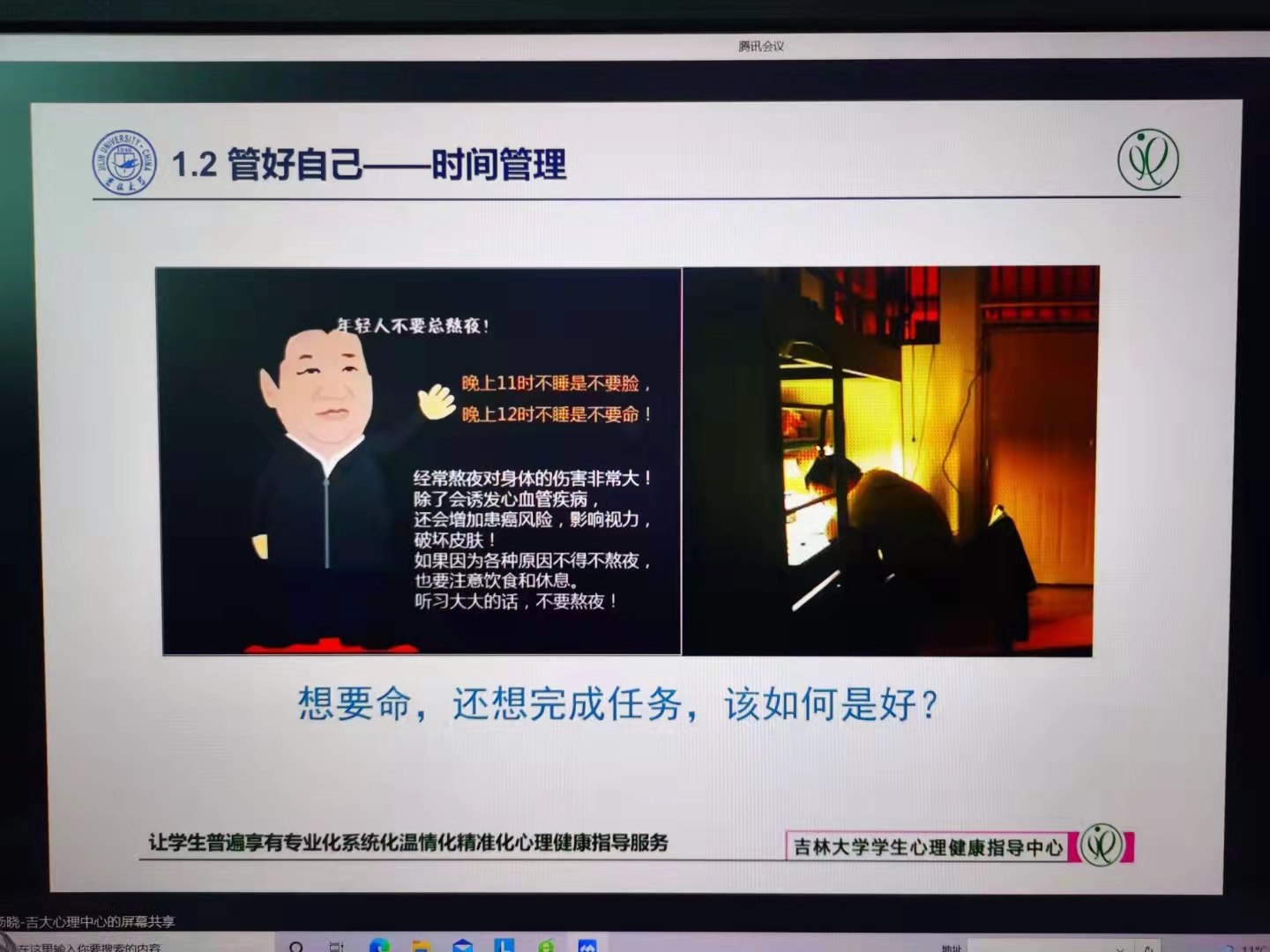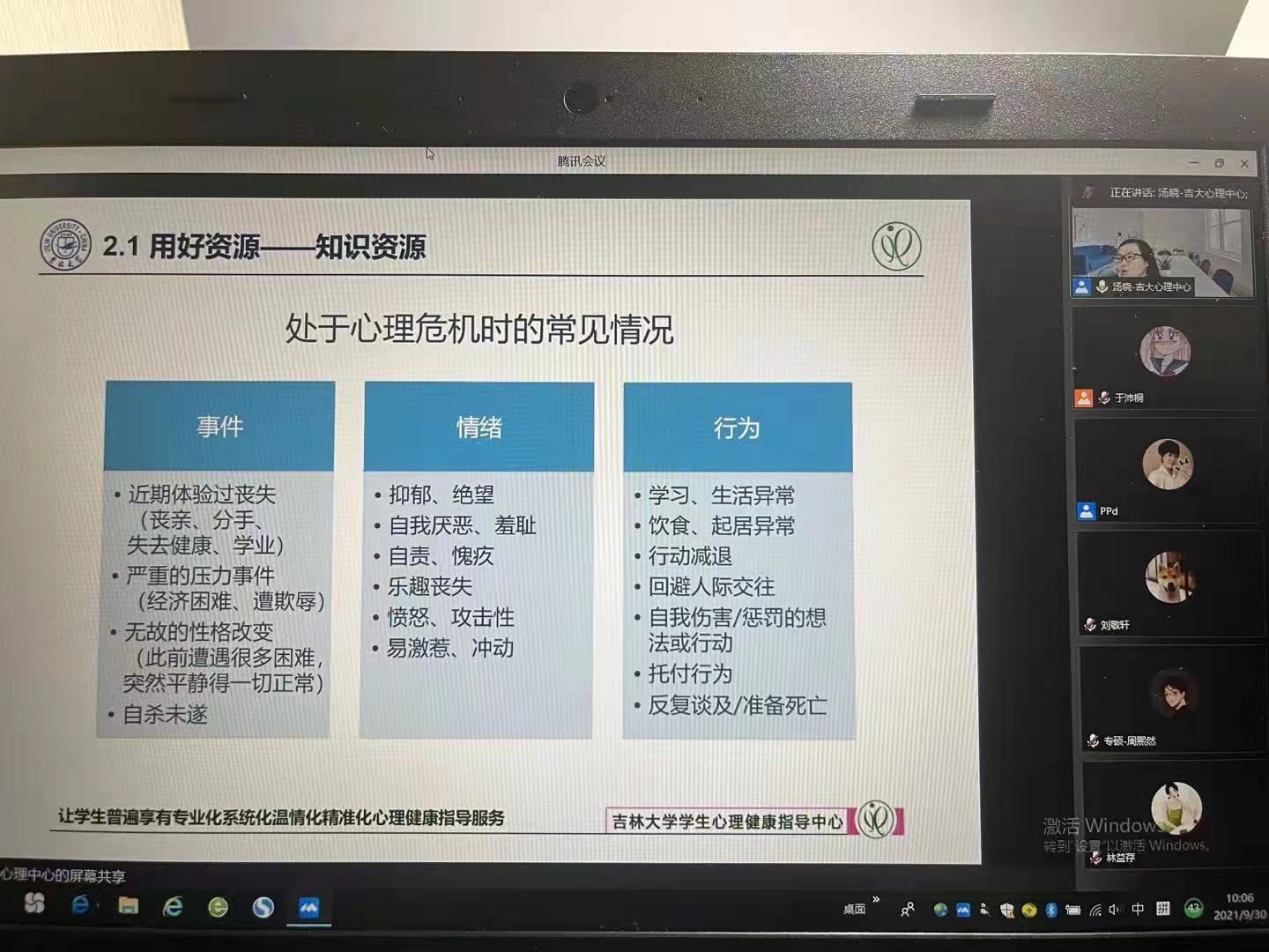 为了使2021级研究生新生尽快适应学校的学习生活,9月30日上午,beat365中国唯一官网以线上形式开展心理健康教育讲座,吉林大学心理健康指导中心的汤晓老师应邀为2021级研究生新生做新生入学心理健康教育讲座,本次会议由beat365中国唯一官网学生朋辈心理辅导员于沛桐主持。