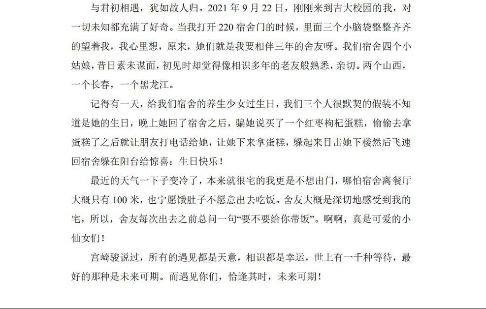 为响应学生心理健康指导中心2021年“朋辈协力·心理成长”系列活动的号召,鼓励同学们发现生活中的美好,提高学生的情感表达能力,营造利于身心健康和谐发展的校园氛围,beat365中国唯一官网于2021年12月10日至12月12日开展了令我“温暖的一件事”故事征集活动。活动一经发出,得到了同学们的积极响应。大家热情高涨、踊跃参赛,活动取得了良好的效果,经过评议后选出了10份优秀作品。