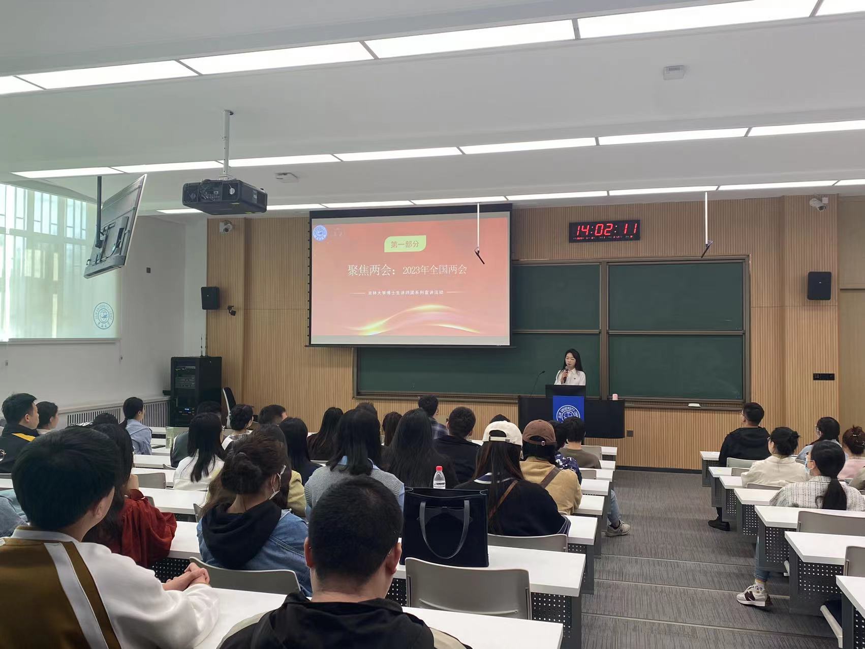 在此次宣讲中,陈超博士结合了丰富的时政热点与数据、案例,宣讲生动鲜活。陈超博士鼓励大家要学习贯彻习近平新时代中国特色社会主义思想,将学习两会精神与贯彻落实党的二十大精神结合起来,本次理论宣讲有深度有温度有广度,加深了与会现场同学对文化建设的深刻认知。