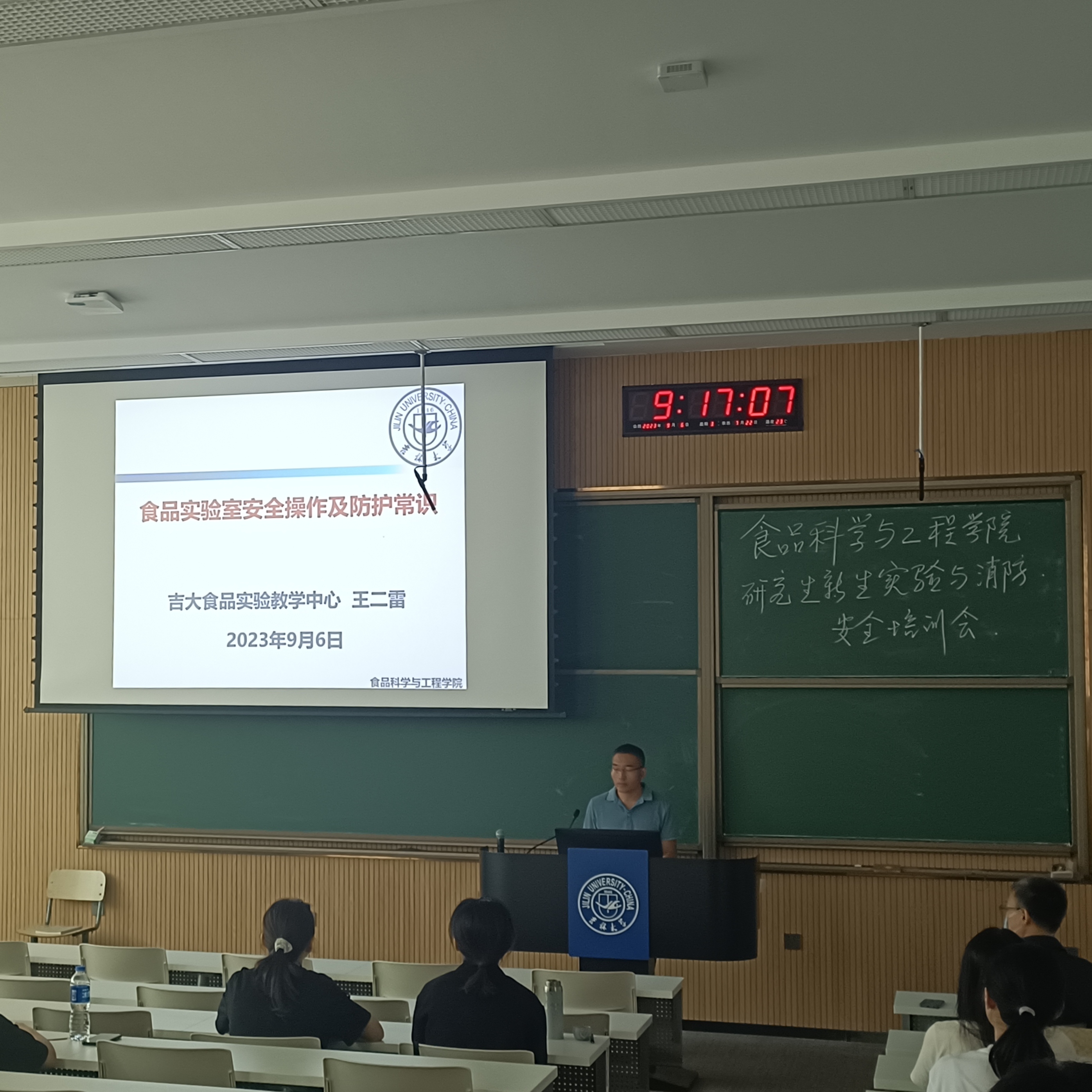 2023年9月6日上午9:00,beat365中国唯一官网于科学讲堂200教室开展消防安全与实验室安全培训,科研副院长周亚军、行政副院长陈玉江、实验中心科研副主任王二雷老师以及全体2023级研究生参加会议。