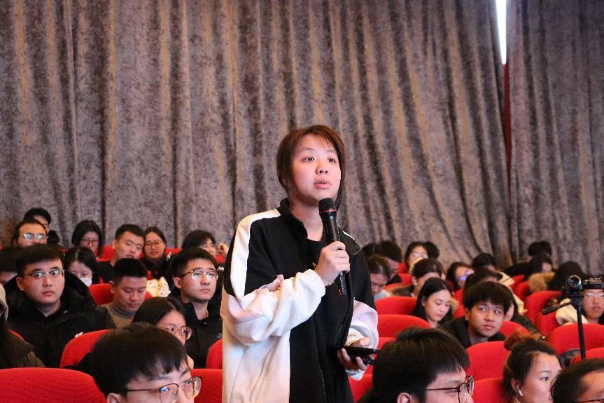 在互动环节,现场师生踊跃提问,围绕糖尿病食品的开发展开问答,生教授积极回应,并分享了个人的研究心得与经验。