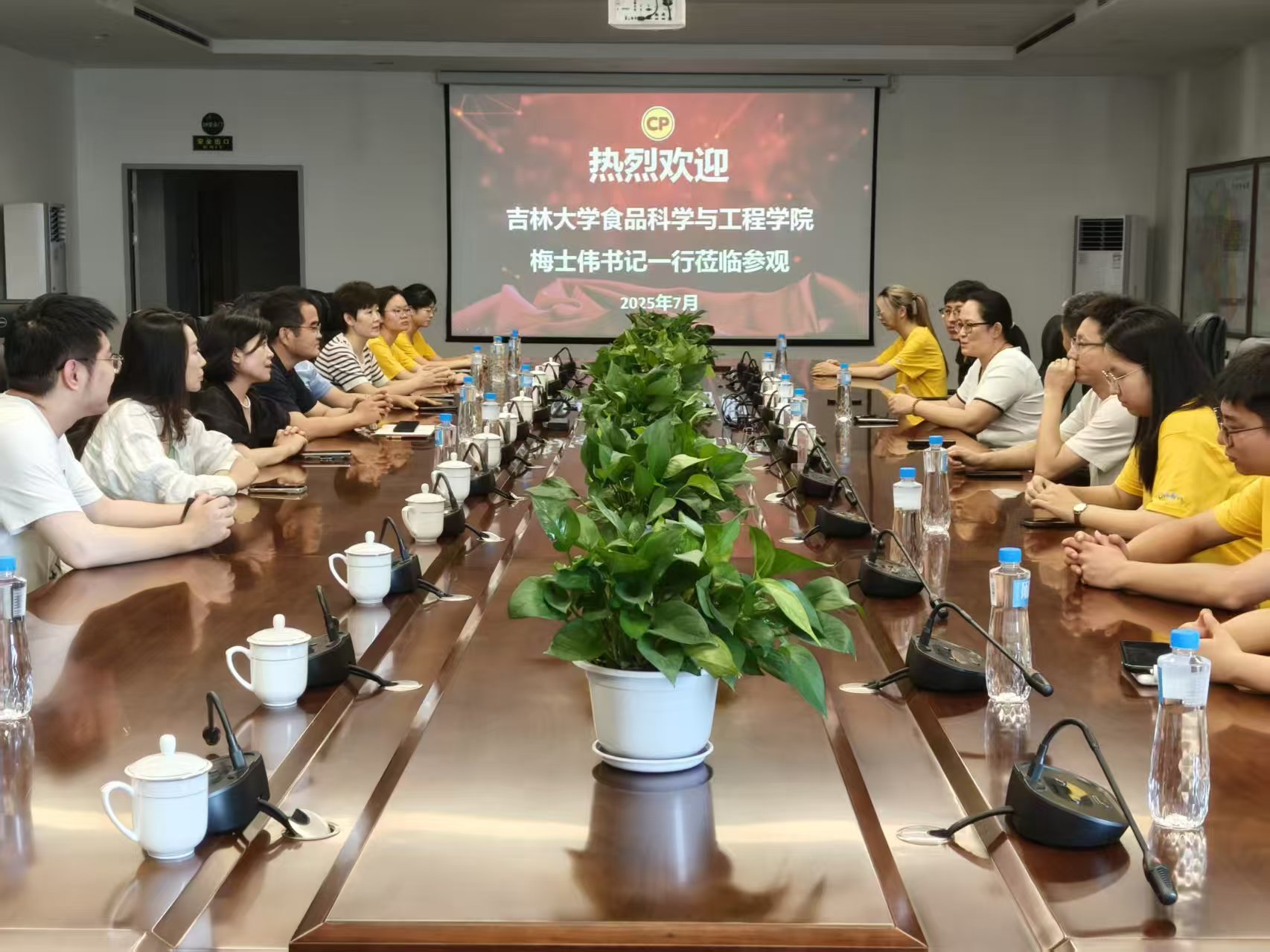 会上,正大集团司马海威总监对吉大师生来访表示热烈欢迎,介绍了正大集团在东北地区农牧食品全产业链的布局,及榆树正大食品有限公司的整体情况、业务发展、技术需求、岗位人才招聘等情况。学院梅士伟书记对正大公司的接待表示感谢,就学院发展、科技攻关、服务社会、人才培养等情况进行了介绍,他表示本次到正大食品公司调研洽谈,是魏新刚董事长到访学院后,校企共建合作的再深化再推进,希望学院利用学科优势,帮助企业攻克技术难题,将科学研究转化为社会生产力,推进校企合作进一步走深走实。叶海青副院长就食品产品研发、专利转化、技术瓶颈难题等关键技术与高丽副总裁进行交流探讨,并给予技术帮扶和指导,积极探索科研攻关合作项目和校企共建结合点。同时,学院学工办主任郝慧、团委书记王新欣分别就校外社会实践、实习实训、就业招聘、毕业生培养路径等方面与企业领导进行交流讨论,现场气氛热烈。