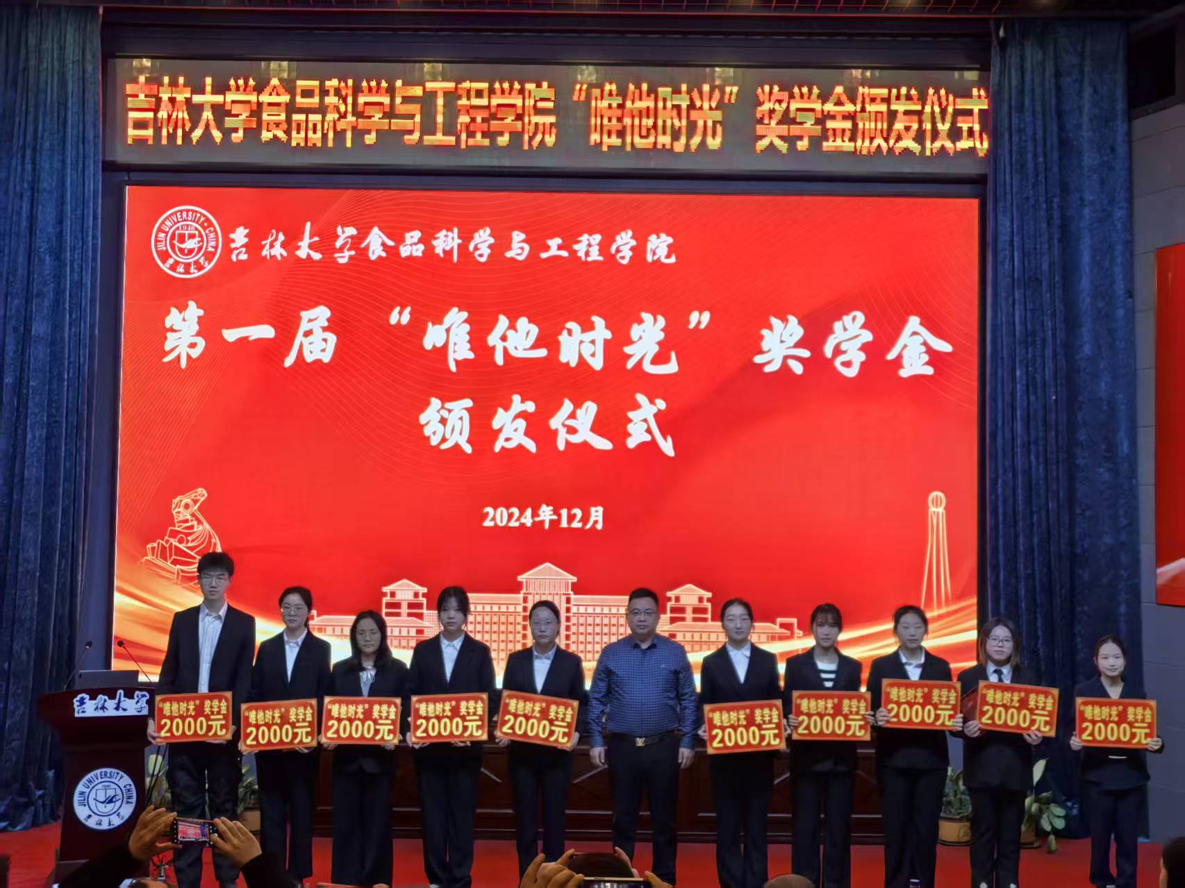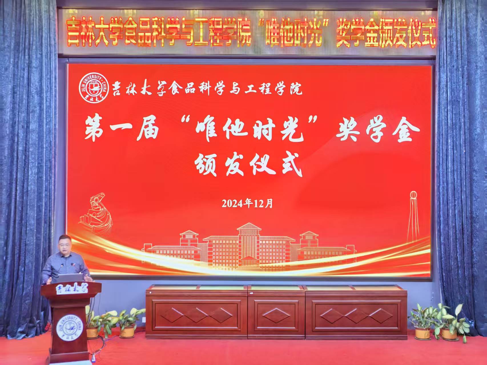 赵法利总经理向获奖学生们送上了真挚的赠言寄语。他表示,这份奖学金凝聚他对母校的感恩和感情,鼓励同学们要热爱专业,热爱母校,刻苦学习,锻炼本领,在食品行业中贡献吉大食品人的青春力量。