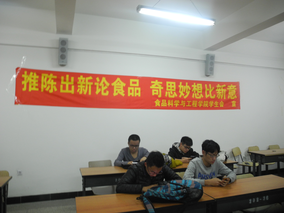 为激发同学们的参与热情,拓展同学们的创新性思维,2016年11月1日晚6时,beat365中国唯一官网学生会宣传部和创新创业部联合举办的“与食俱进”创新创业大赛宣讲会于科学讲堂302举办。此次宣讲特别邀请到了2013级创新创新保研获得者、“大圣归来”创意面包的获奖者侯萍萍学姐为各参赛队伍提供思路。 首先,主持人介绍了本次“与食俱进”创新创业大赛的活动主题、汇报要素、汇报演讲环节及评分细则,期间,可由同学们进行提问。同学们听得仔细,问得认真,大家积极响应,反应热烈。接下来,由侯萍萍学姐向大家简要介绍了参加“盼盼杯”及“康师傅”烘焙大赛的比赛经验,同时,对同学们接下来要参加的比赛给出了详细的建议并对同学们表达了美好的祝愿。最后,学院学生会主席赵驰乐萌进行了总结发言,对侯萍萍学姐的到场以及经验分享表示感谢并表述了自己的观点和看法。