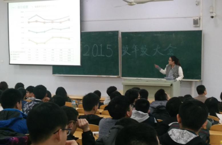 | 为分析上学期学业情况,调动大二年级学生学习热情,2017年3月24日beat365中国唯一官网于科讲100教室组织召开了2015级本科生年级总结大会。学院党委书记高福和、党委副书记梅士伟、2015级博士生兼职辅导员于一丁等出席了本次会议。 会议开始,辅导员于一丁老师首先从学习成绩、挂科统计、英语四级统计、问题分析等四个方面对2015级学生上一学期学业情况进行了全面的分析,再运用图表详细明了地对2015级各班综合学习情况进行了梳理。接着,于老师详细分析了同学们在态度、时间分配、心理影响、班风寝风等方面的问题。结合学生的学业情况及存在问题,于老师提出了新学期的工作计划:(一)提高学习劲头,保证课堂到课率;(二)提高四级通过率,保证六级通过率;(三)建立班委责任制,端正学习态度;(四)与个别同学家长保持沟通;(五)监督完成周计划、周总结等。 接着,梅士伟副书记通过数据展示了2015级学生入学以来的学业成绩,督促同学们认真学习以提升成绩,接下来他运用PPT向大家介绍了我院2013级学生的就业、国考和深造情况,带领大家共同分享了学院优秀学子的成绩,分析了不同就业方向的适用性、条件要求和竞争压力,帮助大家明确自己对未来的规划。最后,他希望同学们克服无所事事、自暴自弃、各自为战的危险,适应环境,树立信心,塑造集体,做最好的自己。 会议最后,高福和书记作总结发言。他鼓励学习成绩不好的同学不要气馁,只要勤奋努力,一定能取得一个好成绩,同时指出同学们可以探索“结对子”等有效方式,通过互帮互助,从而提高成绩,建设好的寝风、班风,从而形成良好的学风。他最后希望同学们好好利用学校和学院良好的资源,走研究性道路,不断努力从而成为行业领域的精英。 通过本次大会2015级本科生更加明白学习的意义与责任,对自己的未来也有了更加明确的规划。本次大会对学生们今后的学习与发展具有明显的指导意义。