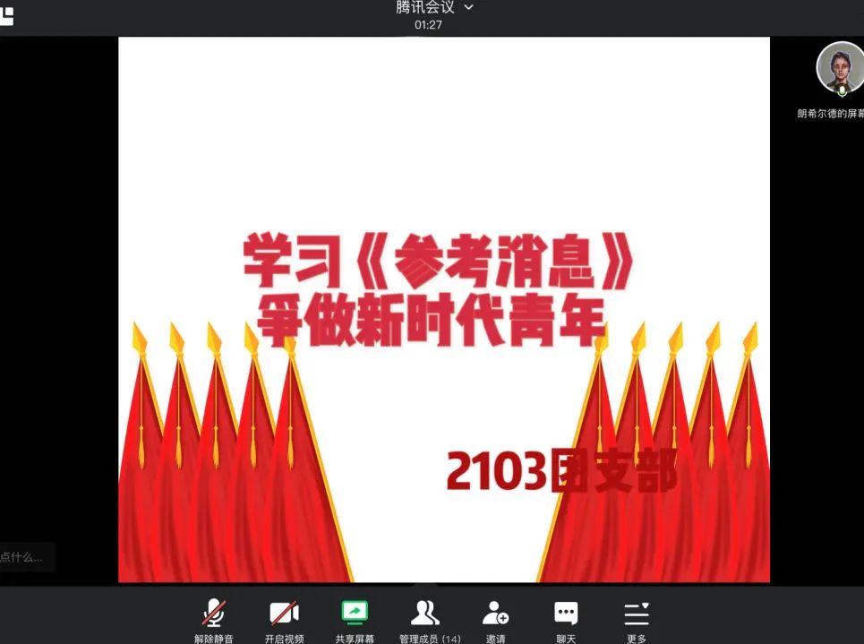 首先,主持人谢钰芊带领同学们一同观看了“参考消息”视频号上最新的几则新闻短讯,让同学们对目前世界形式有了简单的了解。接下来,同学们一起阅读了参考消息数字报,深入阅览了“天舟六号飞天展现中国太空实力”与“大陆推动对台工作高质量发展”两篇报道,通过学习阅读了解新时代的世界形式,了解我国的成就与大国风范。最后,潘科研、朱光宇等同学分享了自己的学习感受,团日活动圆满结束!