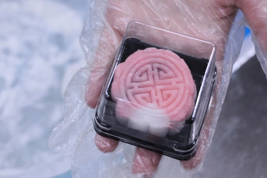 本次活动中,工作人员为同学们准备了可可、草莓、抹茶、原味的冰皮以及红豆沙、莲蓉、蛋黄三种口味的馅料。36名同学平均分为六组,经过工作人员耐心地示范月饼的制作过程,大家开始投身于紧张的制作环节。其中,富有相思之意的豆沙馅和奶香浓郁的蛋黄馅广受欢迎。
