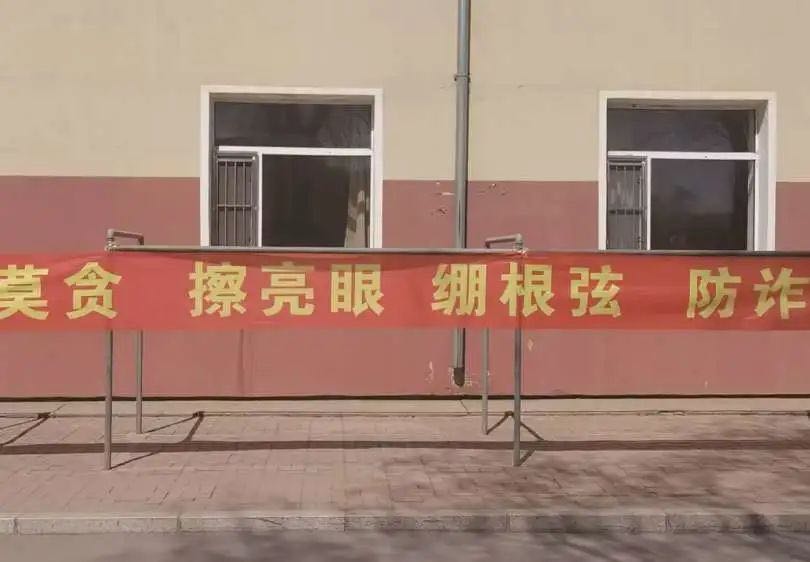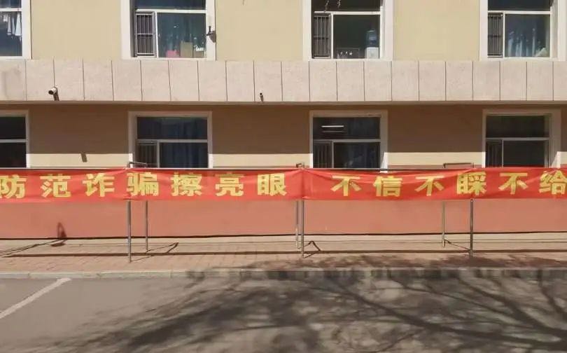 学院制作反诈宣传横幅张贴于人行道两侧,将反诈思想覆盖每一个角落,让反诈宣语深入人心。