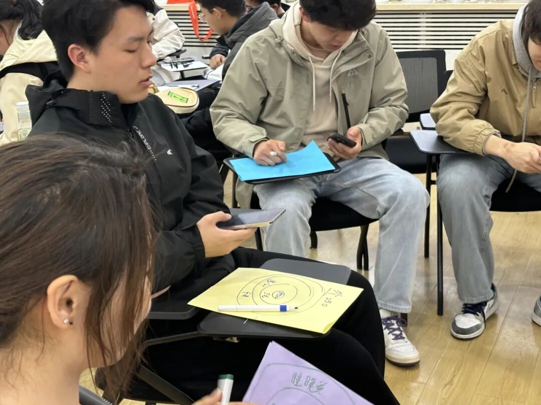 本次“心灵沟通”主题班会在敬信楼A101心理团体活动室进行,分为“暖身阶段”与“班会阶段”。在“暖身阶段”,朋辈心理辅导员为同学们介绍此次班会的主题、目标和预期时间,并组织同学们以小组为单位进行自我介绍。