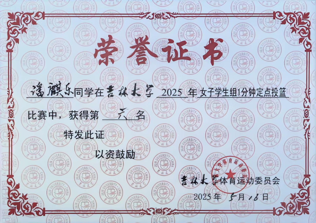 女子一分钟定点投篮第六名    潘麒乐