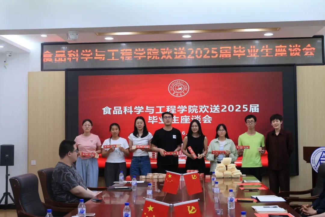 本次欢送毕业生座谈会不仅是一场温情的告别,更是一次精神的传承。愿2025届食品学子们带着学校和师长的嘱托与祝福,胸怀梦想,脚踏实地,在未来的广阔天地中乘风破浪,书写无愧于时代的青春篇章!
