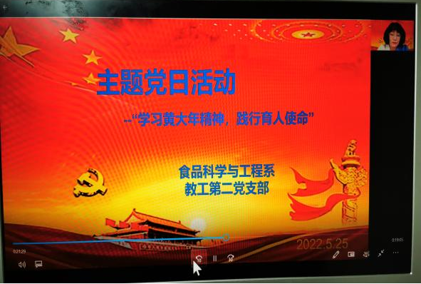 根据学院党委统一部署和“三会一课”工作制度要求,食品科学与工程系教工第二党支部于2022年5月25日20:00通过线上腾讯会议,组织召开了“学习大年精神,践行育人使命”党支部主题党日活动。支部全体党员参加,由李欣欣书记主持。