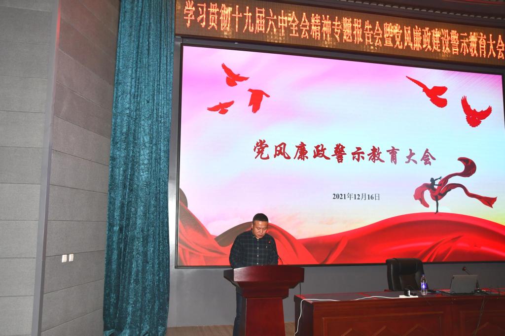 最后,动物医学学院党委书记饶家辉同志表示,深入学习领会党的十九届六中全会精神是当前和今后一个时期的重要政治任务,是推动党史学习教育深化拓展的必然要求。党风廉政建设警示教育,是告诫大家要以违规违纪违法典型案例为警醒、警钟长鸣,树立正确的人生观、价值观和事业观,筑牢红线和底线,营造争当为学为事为人相统一“大先生”的良好氛围。本次会议精神全体师生均要一以贯之,纵深推进,全面加强党的建设。