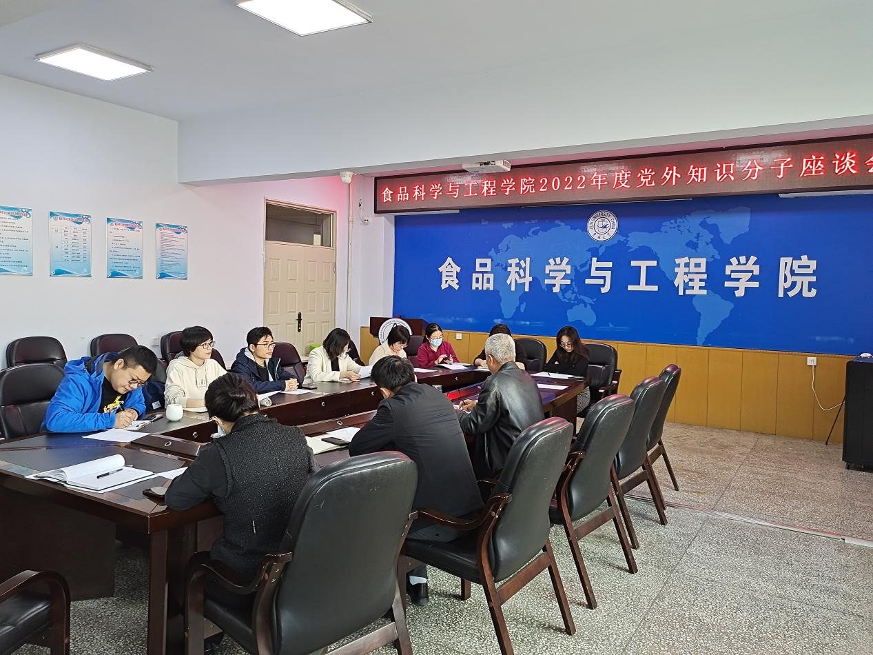 11月9日下午,beat365中国唯一官网党外知识分子学习宣传贯彻党的二十大精神座谈会在食品楼312会议室召开,学院党委书记董怀智、副书记兼副院长李超及党外知识分子联谊会成员参与座谈。会议由董怀智主持。